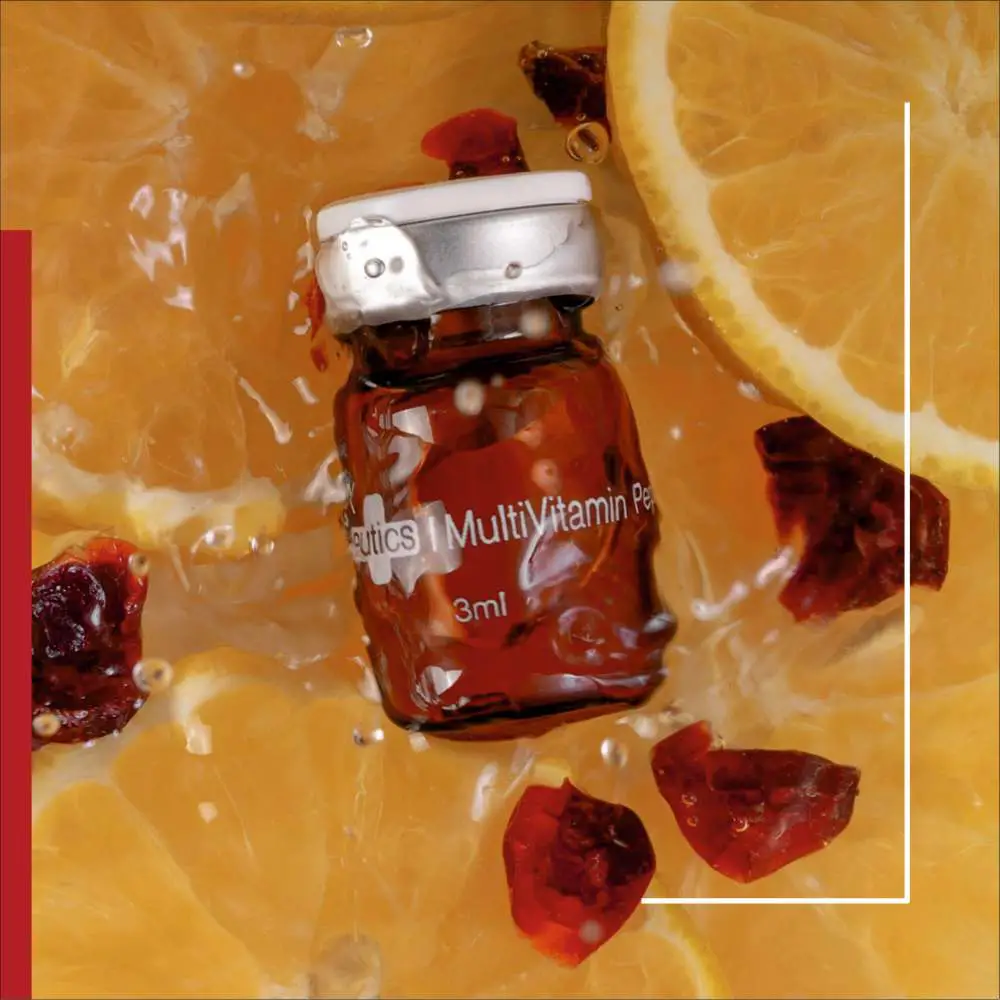 Bir Bio-Stimulant kokteyl olan Multivitamin peptides 150 den fazla içeriği birleştirir. Bu vitaminler (B kompleks, C,A…) protein sentezini düzenler, hücre çoğalmasını destekler ve dokuları güçlendirir. Cilt yüzeyinde çalışıp doku ve hücre oluşumunu hızlandırdığı için; ince çizgilerin, kırışıklıkların ve yaşlılık lekelerinin görünümünü azaltır.